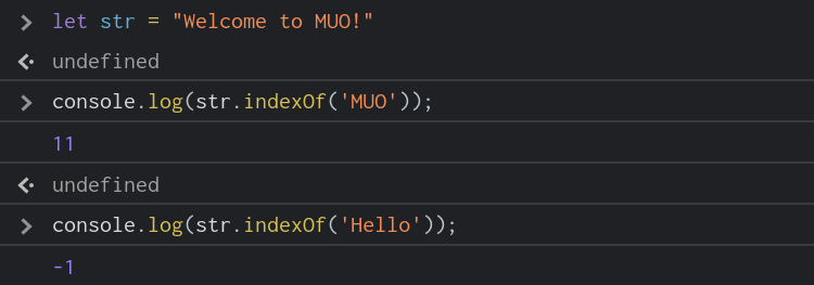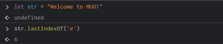 Similarly, the lastIndexOf() method returns the index of the last occurrence of the given character or string. Here’s an example: