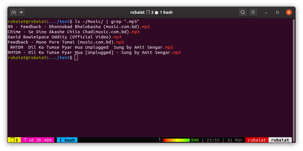 ls ~/Music/ | grep ".mp3"