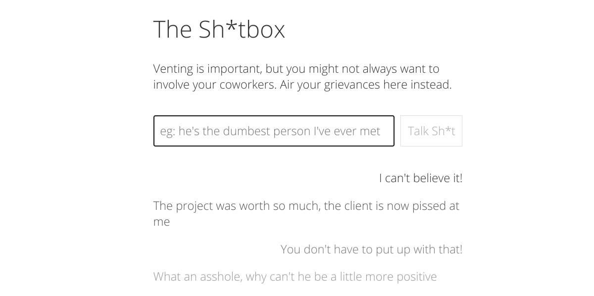 4. The Sh*tbox (Web): Securely Vent About Work Grievances to a Chat-Bot