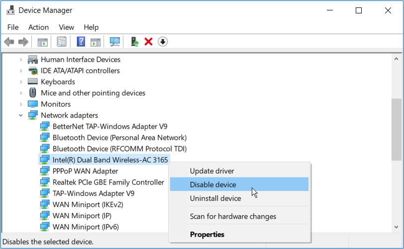 - Open the Device Manager and the Network adapters option as per the previous steps.