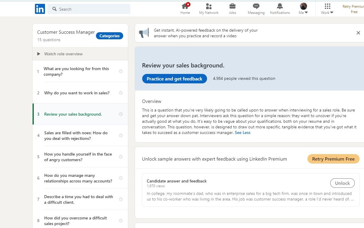 You can click a question and view the rationale behind the questions and tips to frame your answer. However, to view the answers, you can upgrade to Premium.
