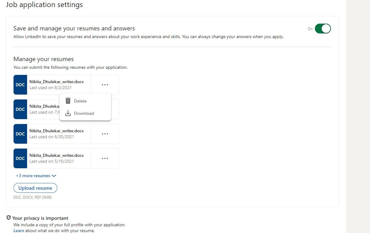 You can easily apply to a diverse range of jobs by uploading more than one version of your resume to your LinkedIn account.
