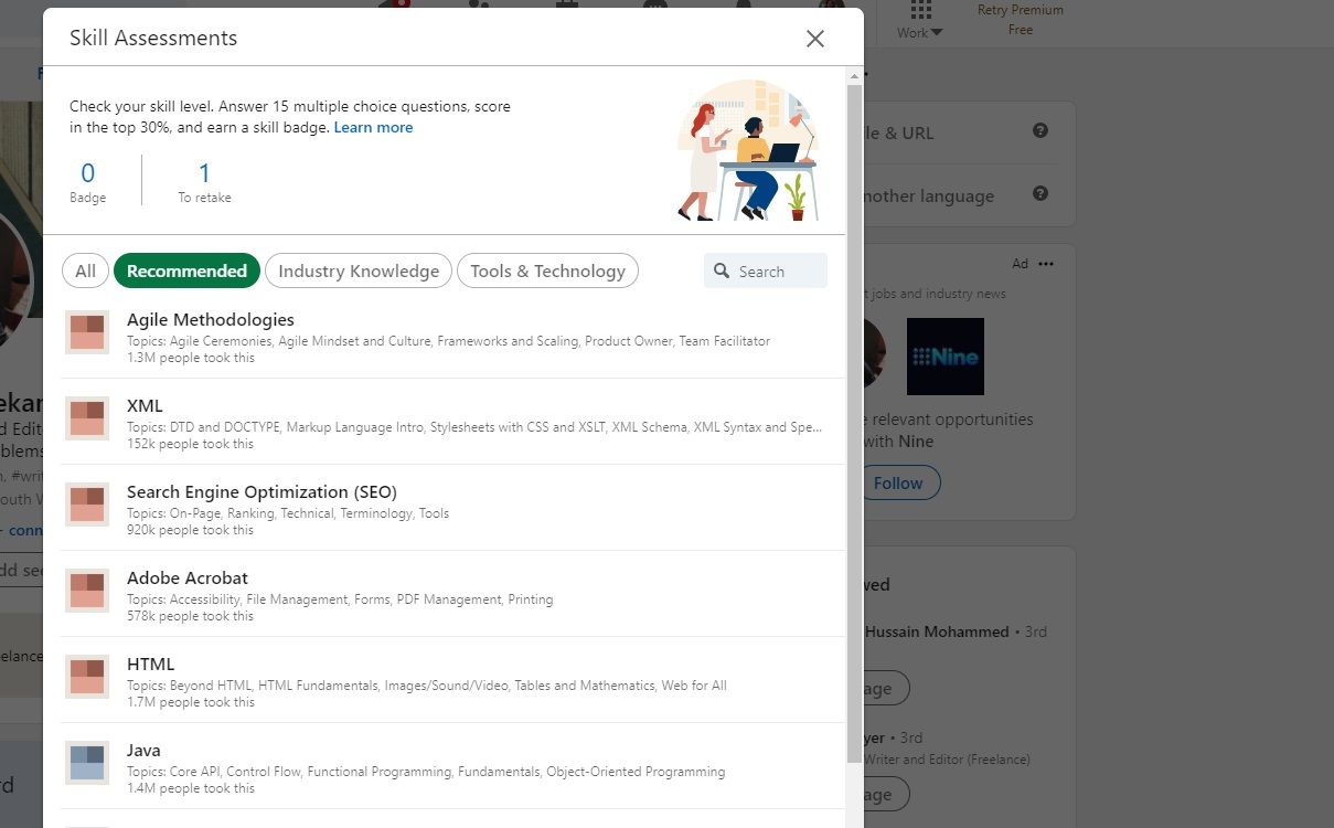 6. Taking LinkedIn Skill Assessments