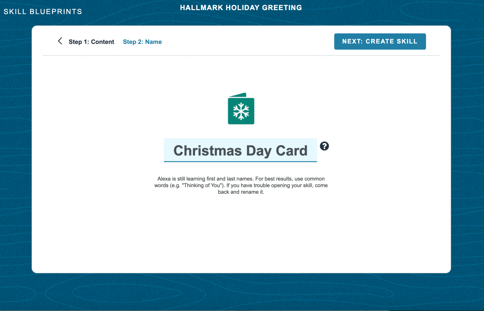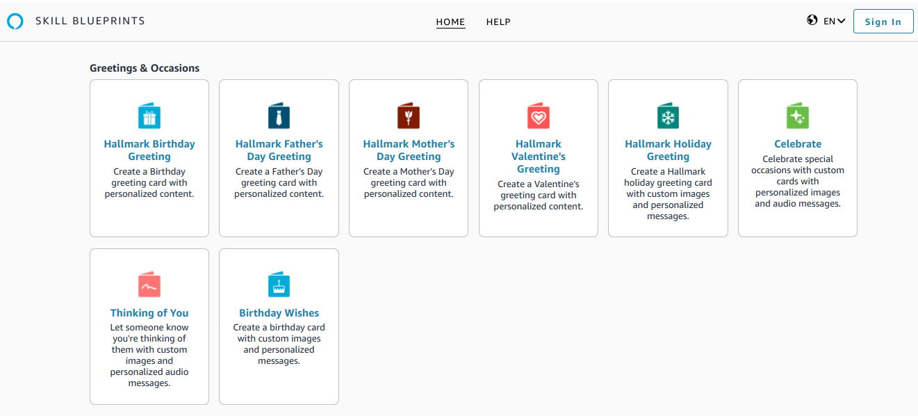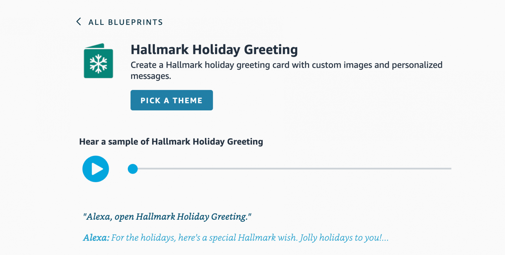 Firstly you must go to Amazon’s Skill Blueprints page and select the Hallmark Holiday Greeting icon.