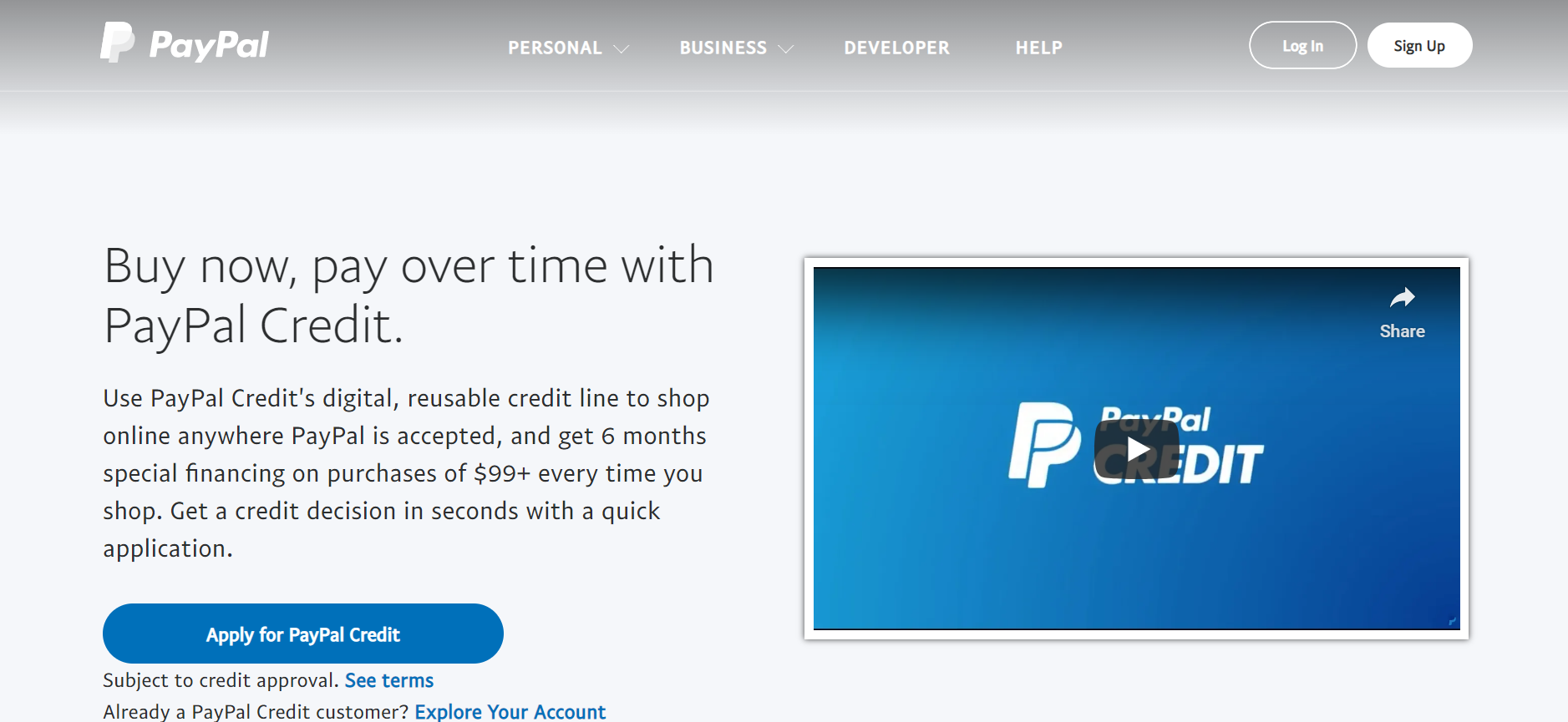 PayPal Credit draws the line at $ 98.99. What does this mean? If you make a purchase that is below that amount, you are able to pay it off over time with no specific time frame in place.