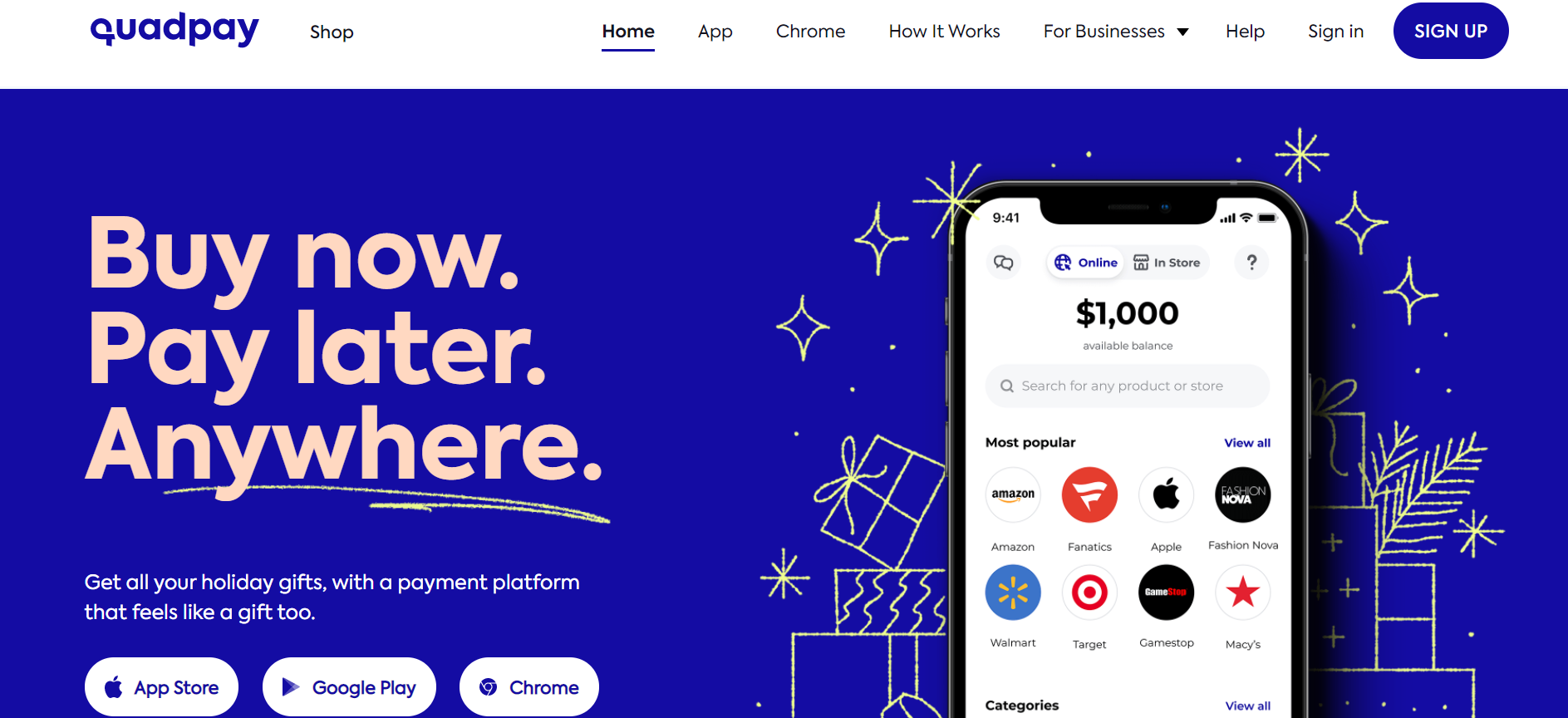 Owned by Zip Pay, Quad Pay is the company’s BNPL service made specifically for the US.