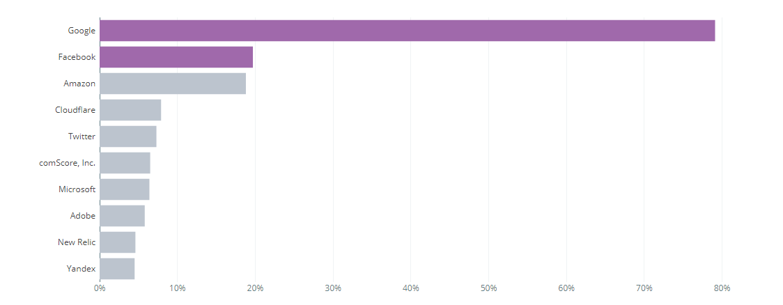 The following WhoTracksMe chart illustrates the percentage of trackers found online belonging to each major tech company: