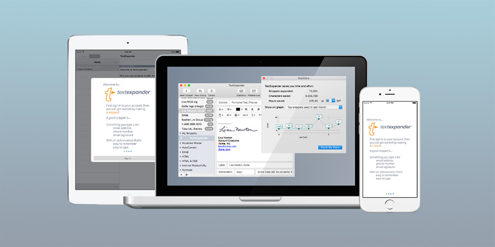 You know what feels really good? Getting the same amount done in less time. I’m sure you already knew that, though. What you might not know is how to make that dream a reality. It’s quite simple, really, you just need the tools and a bit of knowledge. One of the best ways to trim time from your workload is TextExpander. It’ll take the inputs you use frequently and make them happen faster. You shave off two seconds here, five seconds there, and over the course of a workday, you’ve saved a substantial amount of time. And right now, you can…