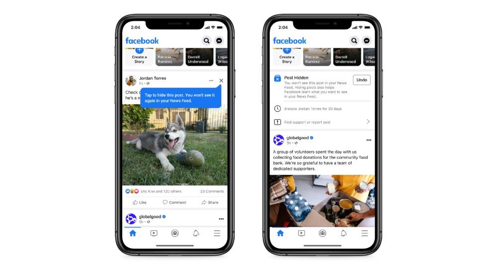Finally, Facebook is trying to make it easier for people to hide content that they don’t like. Facebook has given users the ability to hide posts for quite some time now, but it’s currently a few taps away in a post’s three dots menu.