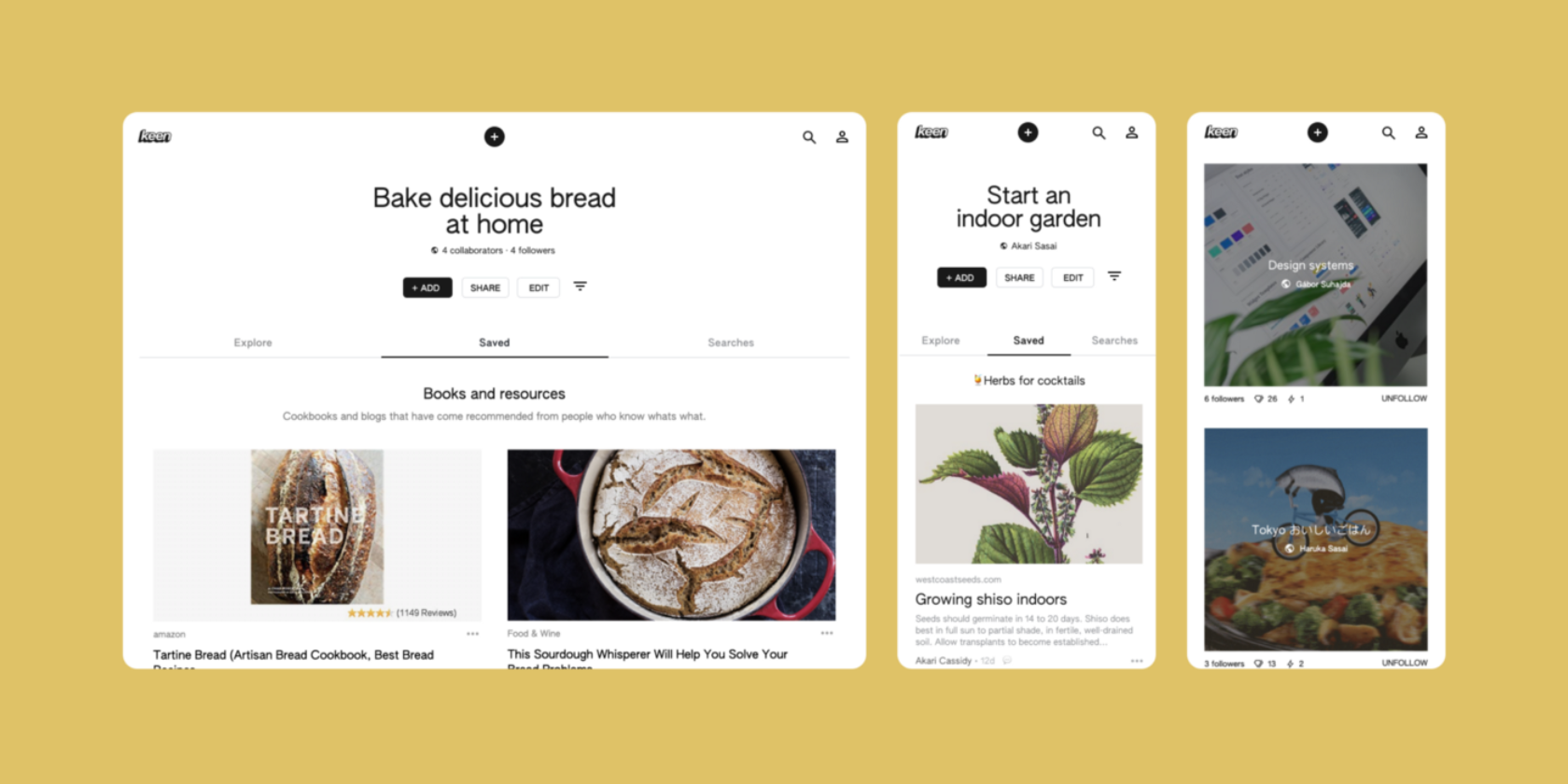It’s Google’s machine learning technology that helps differentiate Keen from Pinterest. You make a “keen” on a topic that interests you, and add some related content. This content then acts like seeds, with the machine learning using them to build out your collection.