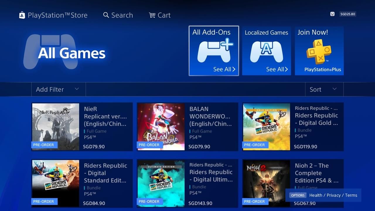 If you want to browse the entire game catalog, you may select All Games from the left column of the PlayStation Store. From there, you can sort the games using the Add Filter and Sort buttons. Games for pre-order will also be available.