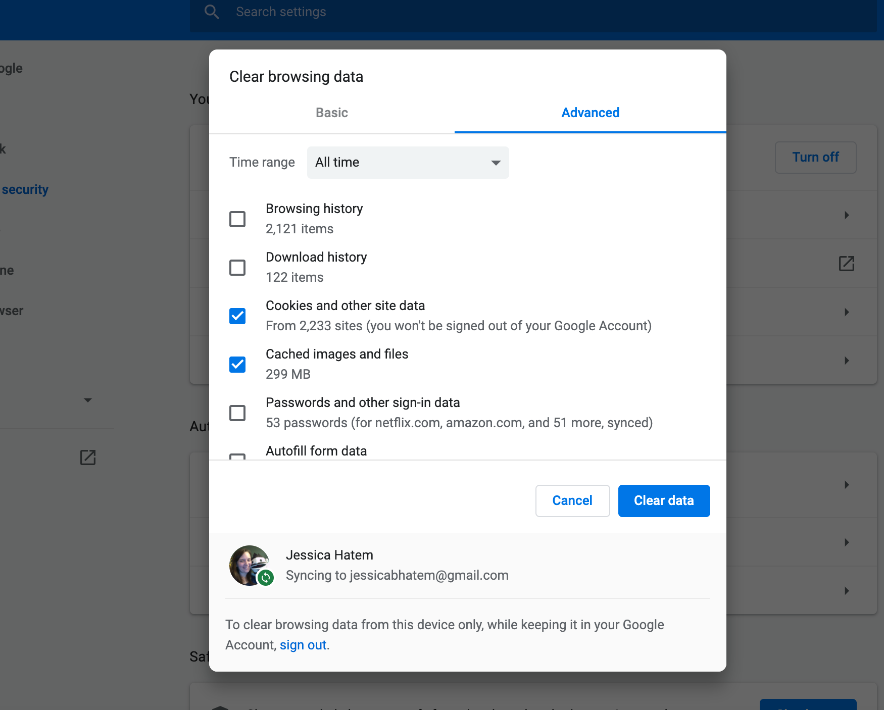 When you’re sure you’re only clearing cookies and caches, click the Clear data button. The clearing will all get done, and you’ll be good to go with a slightly more effective browser.