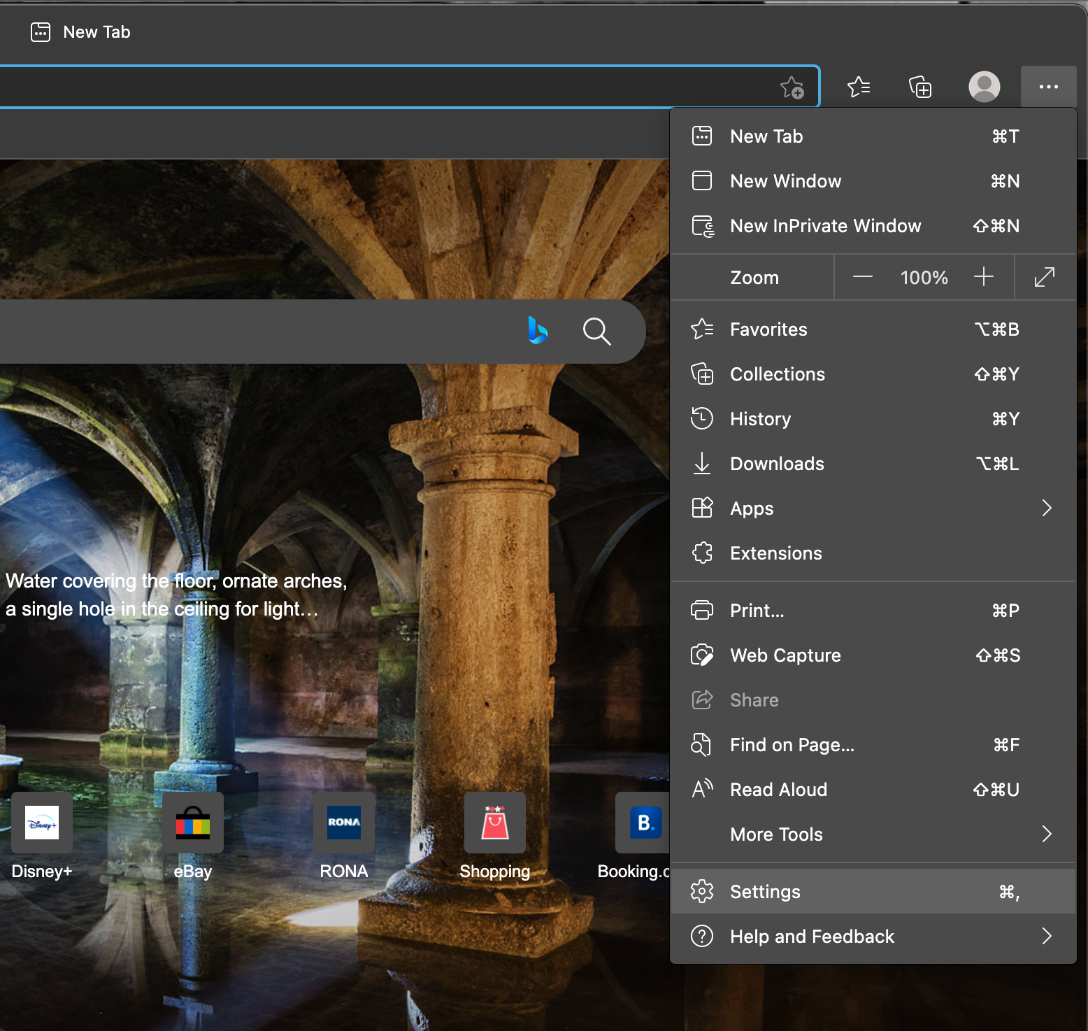To do the clearing open Edge’s Settings by clicking on the three dot menu and selecting it there, or by using the keyboard shortcut Cmd + Comma.
