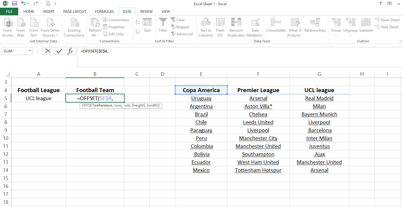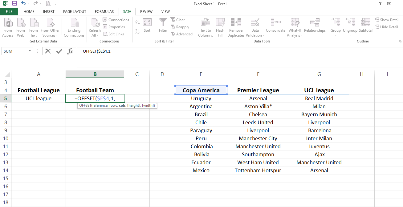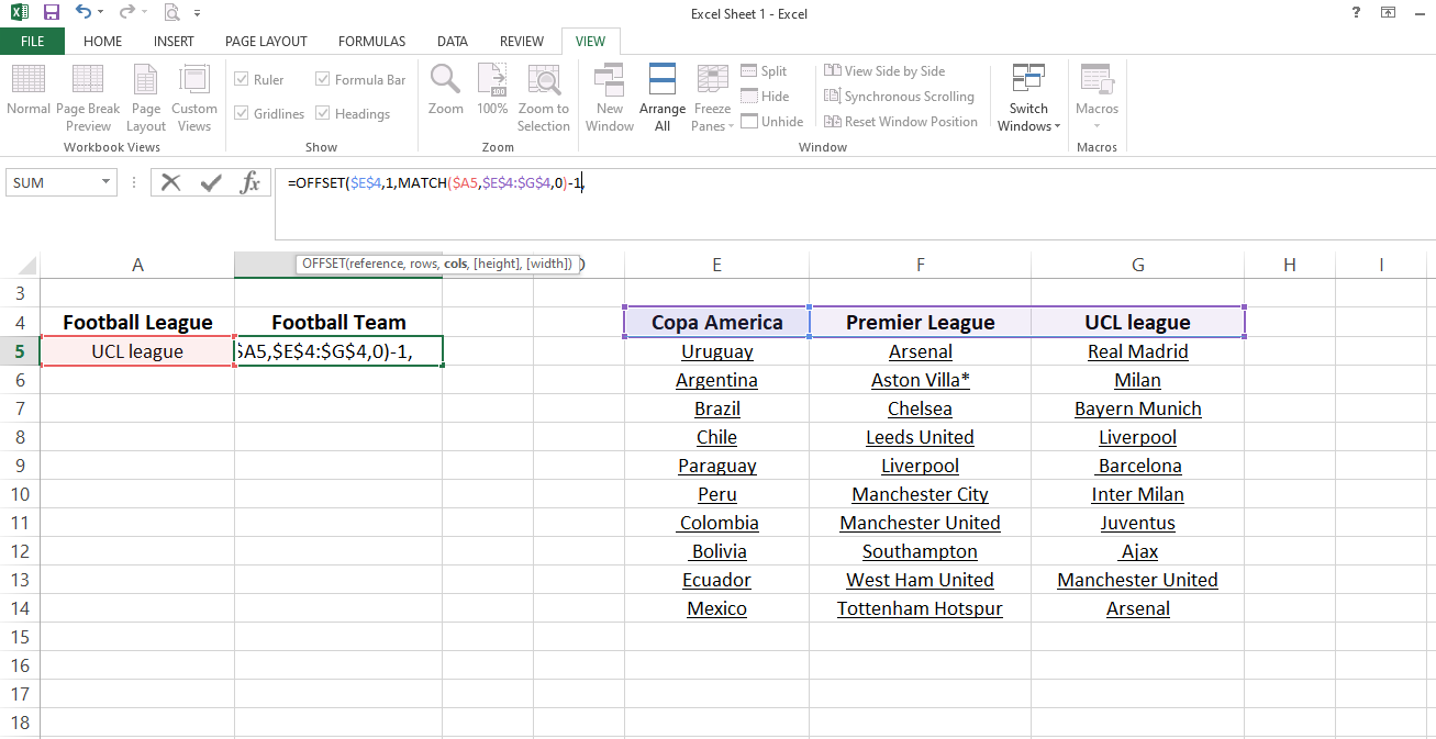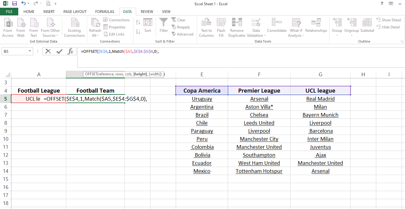 3. Column: Just like rows, this argument describes the number of places you want to move across the columns of a dataset. Since the column position depends on the football league included in our simple drop-down, you may need to use the match function as a column argument.