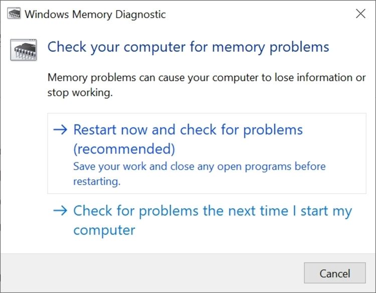 Windows has an in-built utility called Windows Memory Diagnostic that does all the hard work for you and fixes most problems with the computer's memory. It's also simple to use:
