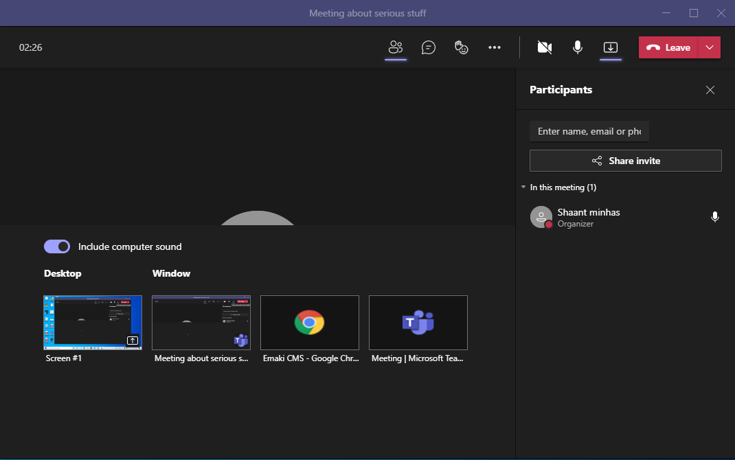 And of course, there’s the option to share your screen with everyone in the meeting, which turns out to be pretty handy if you’re presenting or explaining some topic.