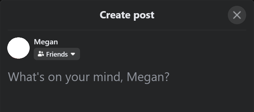 To do this, select the What’s on your mind? text field on your timeline, page, or profile to open the Create post text box.