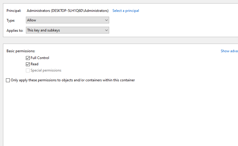 However, if you're trying to manually configure a system component and you're confident that you have the technical knowledge to determine that what you're doing won't harm the system, you may want to take full permission of registry keys.
