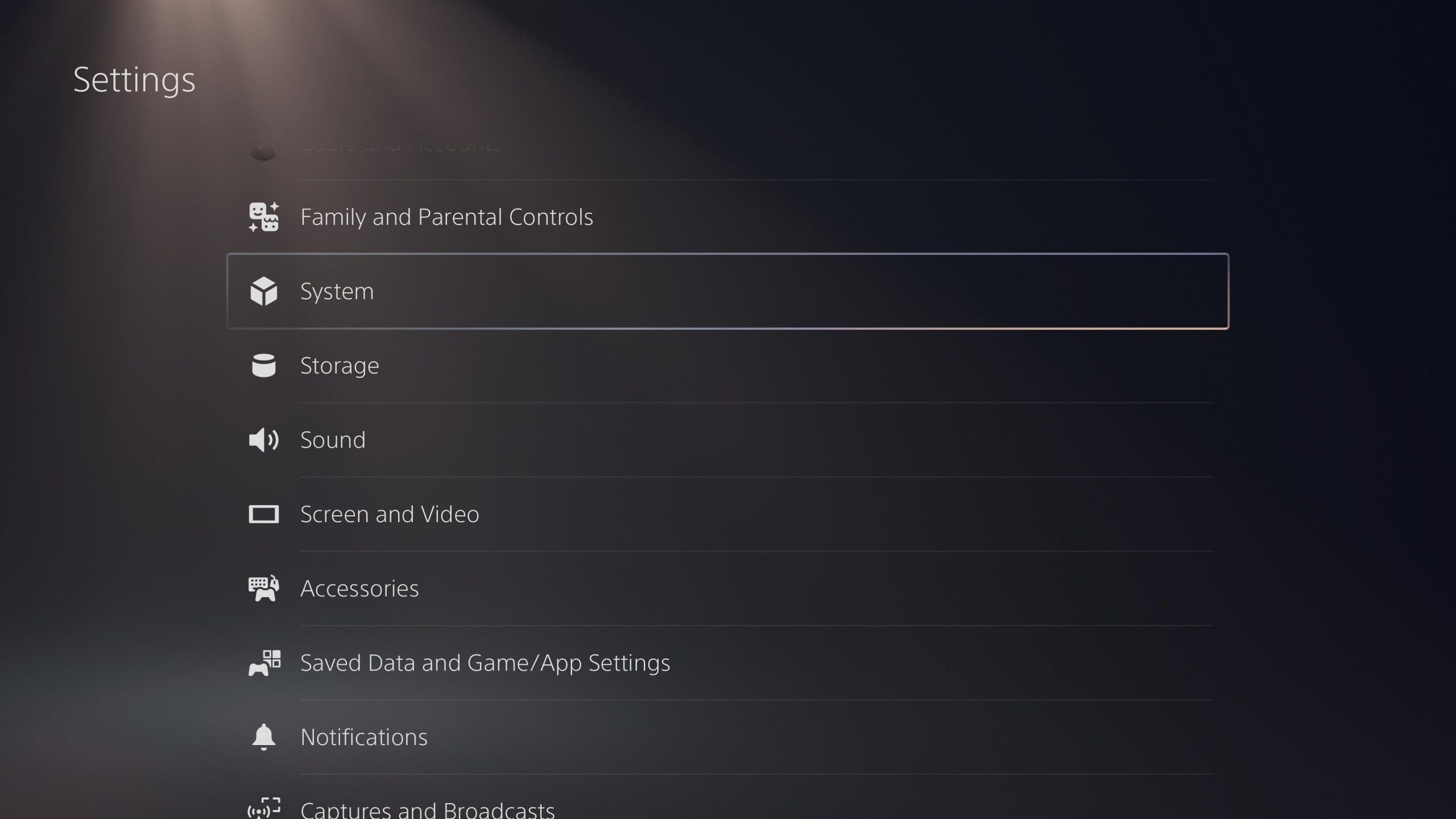 In this menu, scroll down to the System heading and select it.