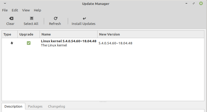 Make sure you’ve updated all your current system packages to their latest versions before attempting an upgrade to Mint 20. You can do so by finding Update Manager in the start menu and then clicking Refresh at the top. Once the update list is refreshed, click Install Updates.