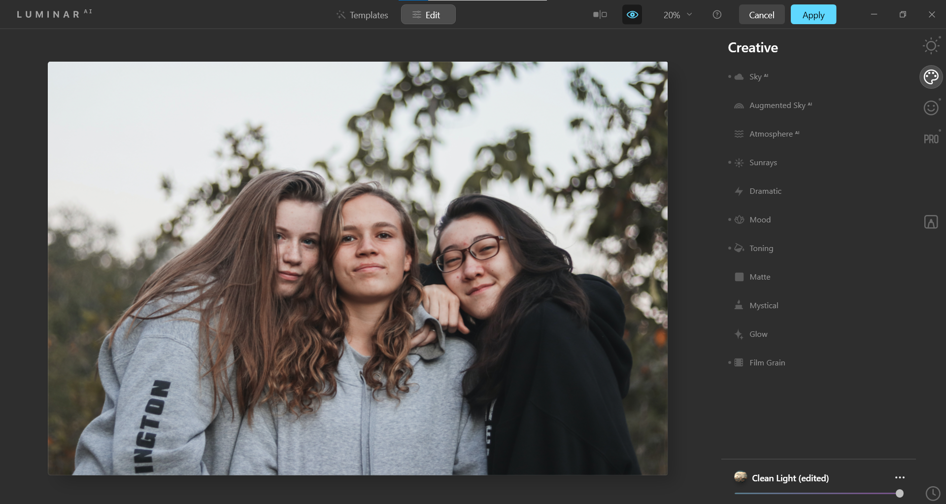 Templates are great places to begin editing your photos in Luminar AI. Here is another example where we used the Glow effect from the Experimental template, and then made additional changes in the Edit menus.