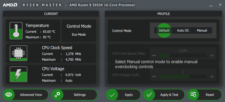 The Ryzen Master UI is fairly complicated, but the interface is designed for both amateurs and enthusiasts. When you open Ryzen Master for the first time, the Home tab should look like this: