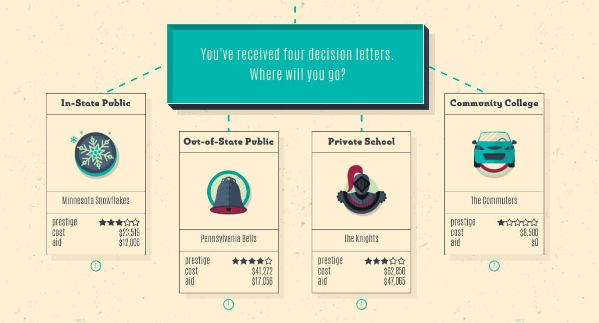Answer the questions as honestly as you can, not based on trying to “win” the game, and you’ll have a realistic picture of your eventual college debt. Feel free to play the game multiple times with different choices to learn how you can best reduce debt.