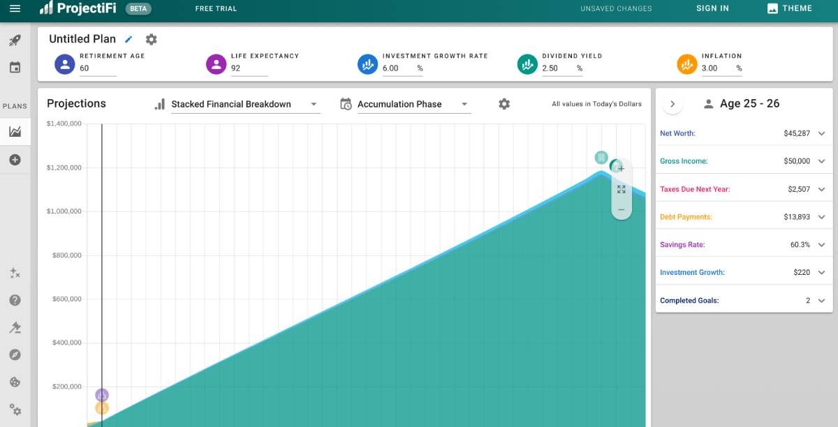 The free version of ProjectiFi is good enough for most people to run a financial simulation of their future and get a decent financial plan going.
