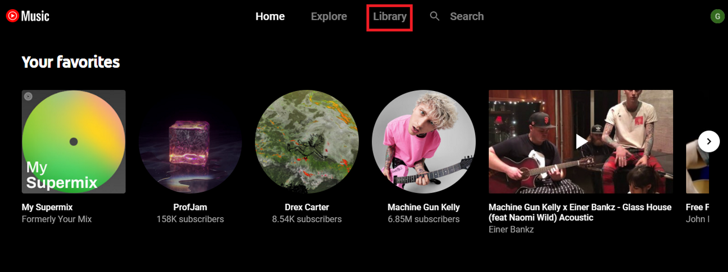 Once you open YouTube Music, head over to your Library at the top of your screen. If you have icons, this will be the third one from the left.