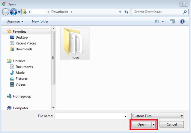 Click Upload Music and you’ll see a windows folder browser appear. Select all of the music files you want to upload and click Open.