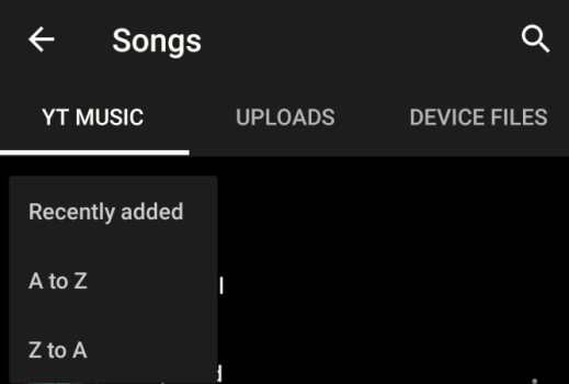 When you have a large library though, this is not really helpful. Thus, YouTube Music offers a drop-down menu in all four sections in the Library (Albums, Artists, Playlists, and Songs). And you have three options when sorting them: recently added (default), from A to Z, and from Z to A. You can change the default option by going to the Device Files tab.