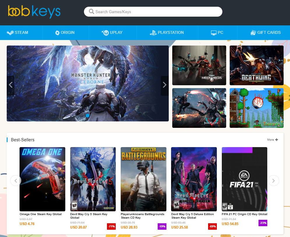 You’ll find some of the best Steam, Uplay, Origin, Battle.net. Xbox, GOG, and PSN keys with constant discounts. It’s also possible to pre-order your favorite game, buy DLCs, game time cards, gift cards, and more.