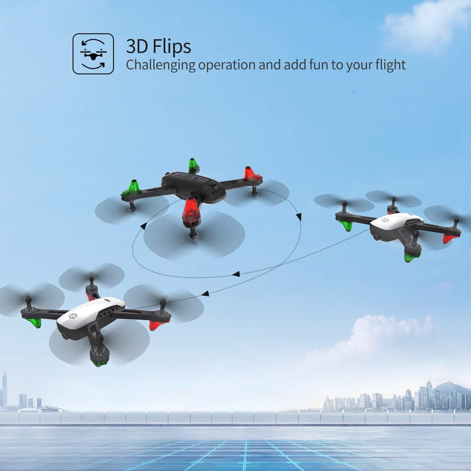 If you want a drone that’s effortless to launch, you need to check out the Snaptain SP350. While other drones require a little bit of expertise to get it off the ground, the SP350 has a unique way of getting airborne. Just throw it up into the air, and it’ll begin flying right away!