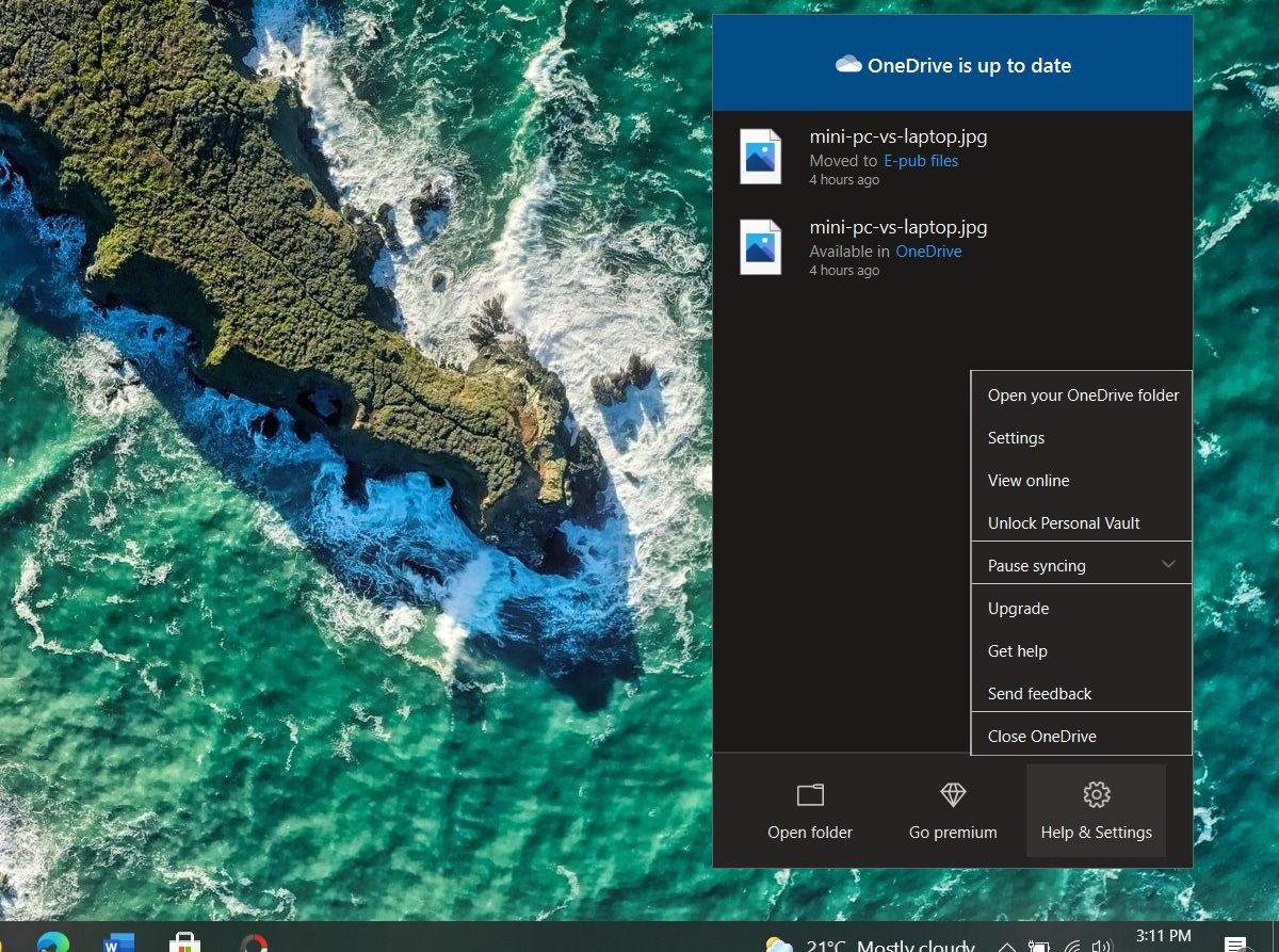 - Right-click on the OneDrive icon on the taskbar.