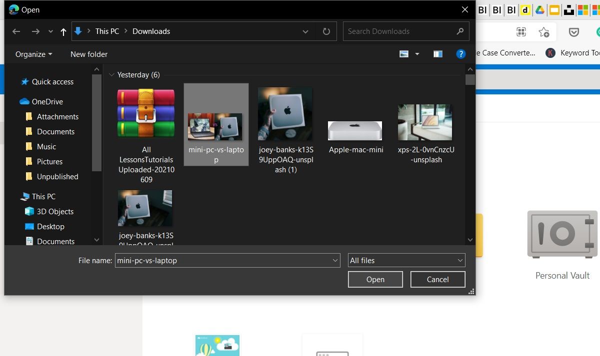 - Select Personal Vault in your OneDrive account.